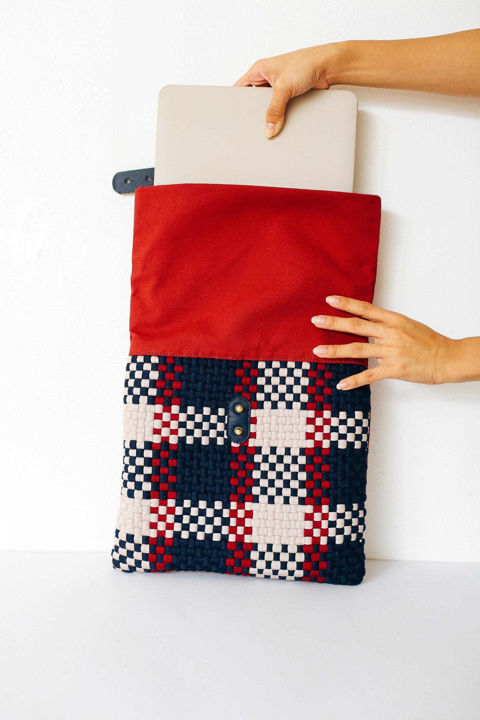 It's made with the signature R2R weave and a canvas flap and back body, both joyfully handwoven by talented artisan communities in the Philippines. At the back, there's a canvas pocket for your chargers and cables.