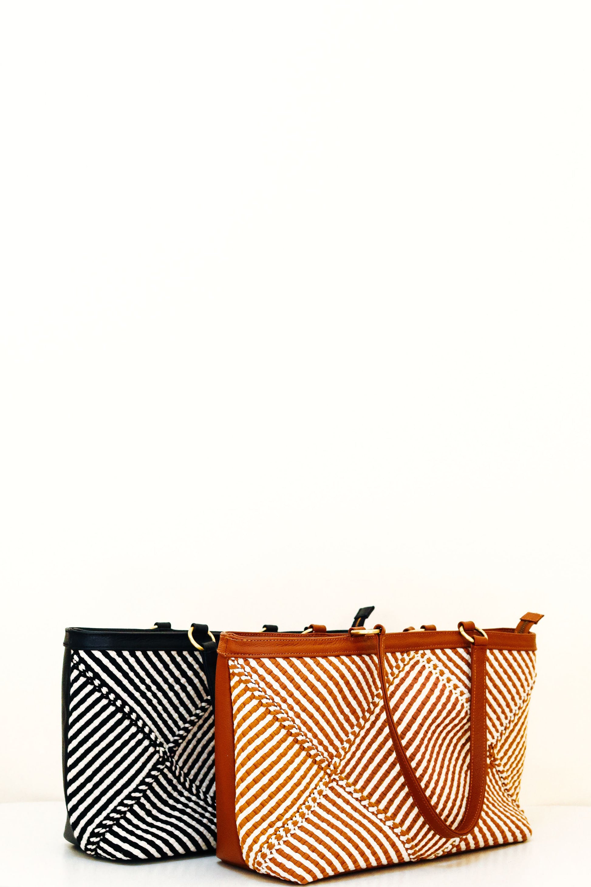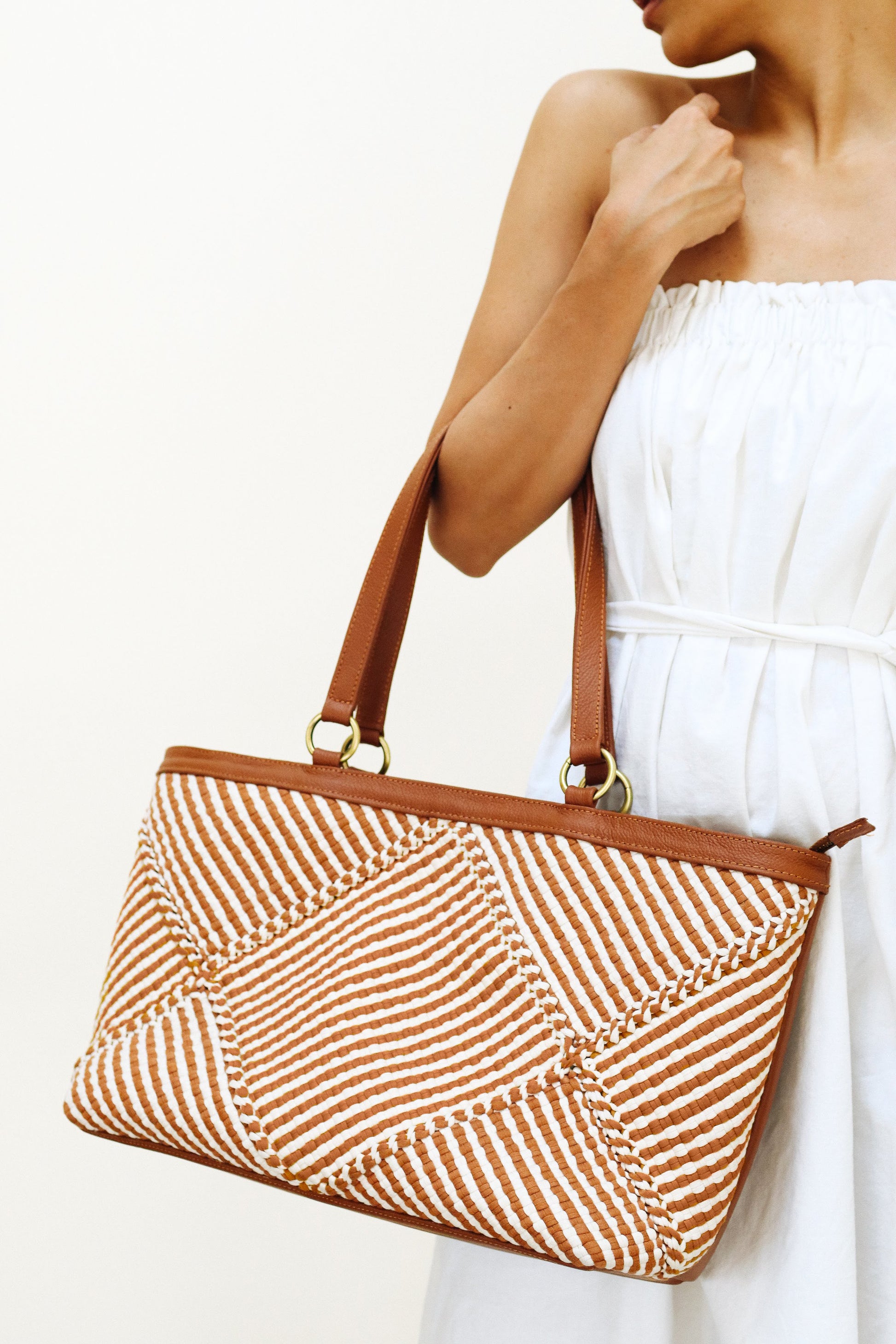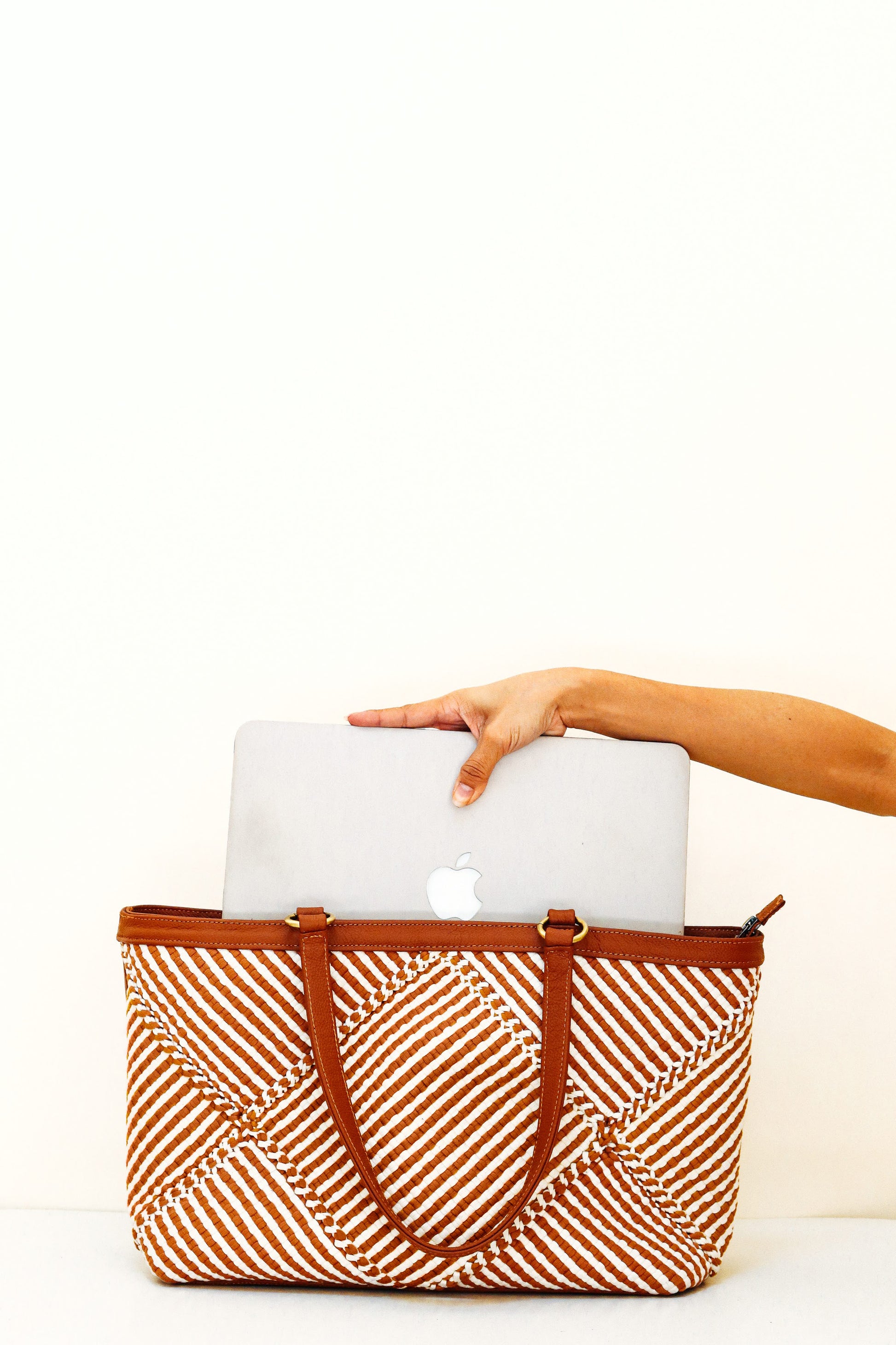 The Dia Work Tote is a trapezoid-shaped bag made for your work days and beyond. Featuring an artisanal multi-directional weaving on one side and full genuine leather on the other, it is the perfect tote to tote around when you need to carry work stuff (it can fit a 15" laptop!), look cute, and represent your country all at the same time.